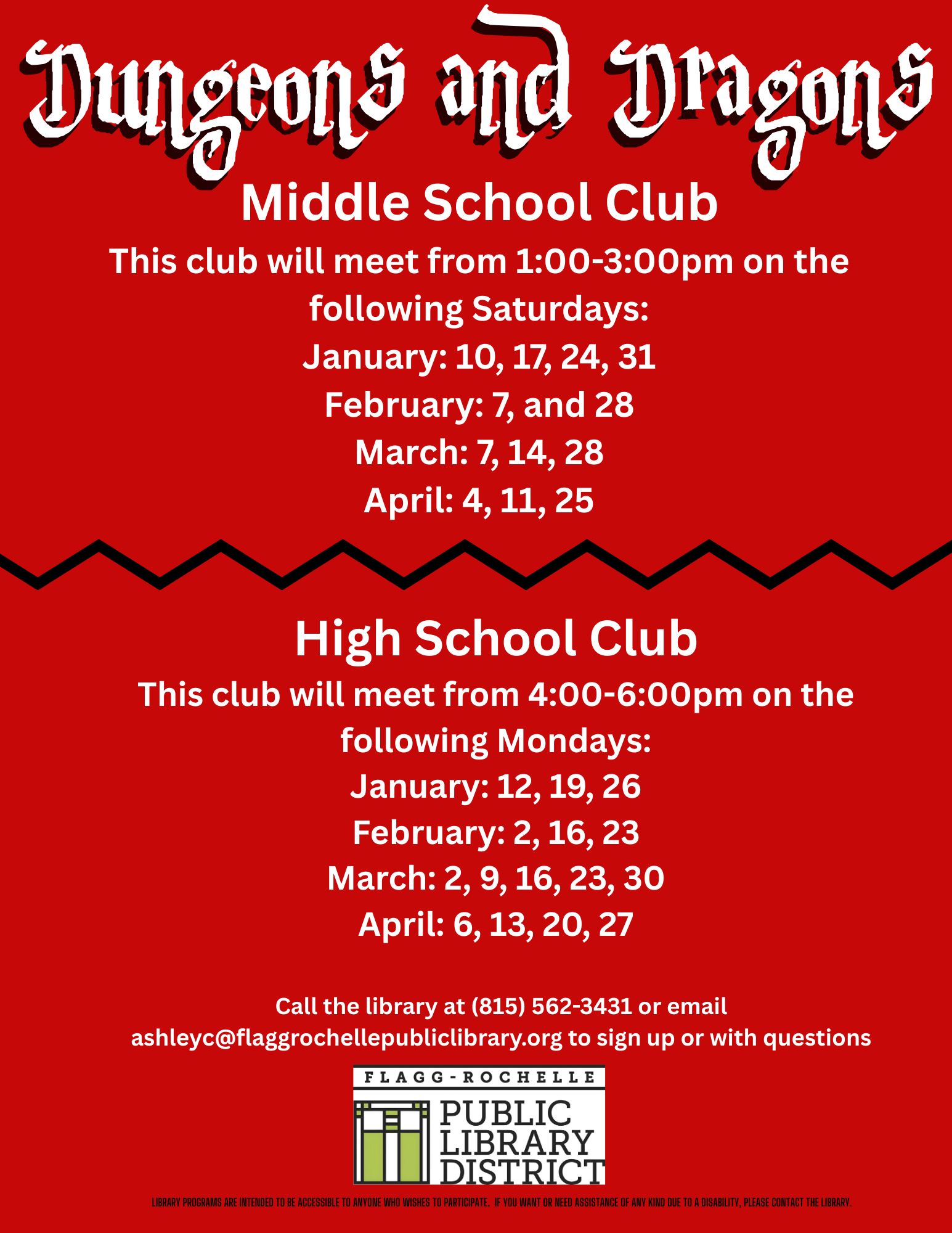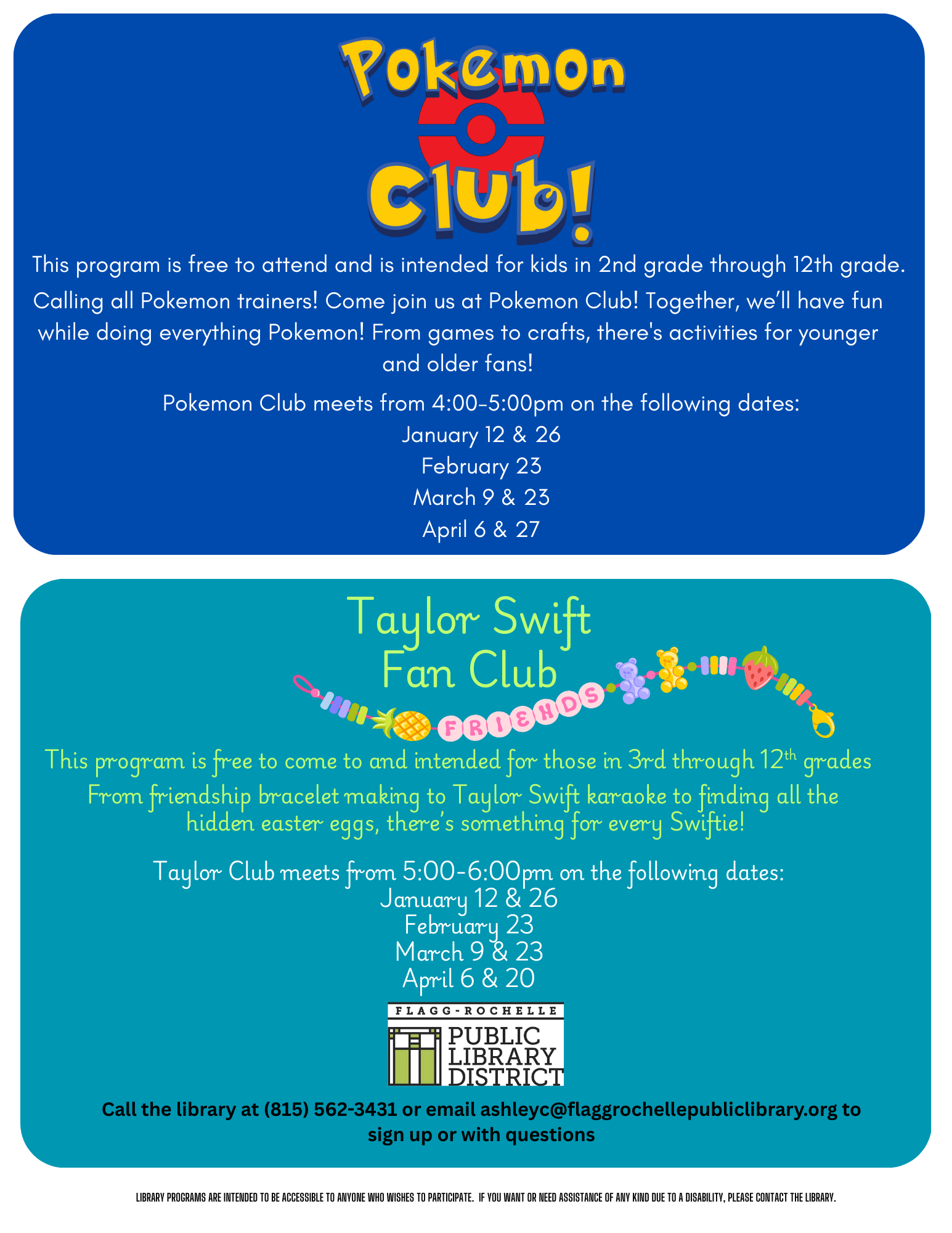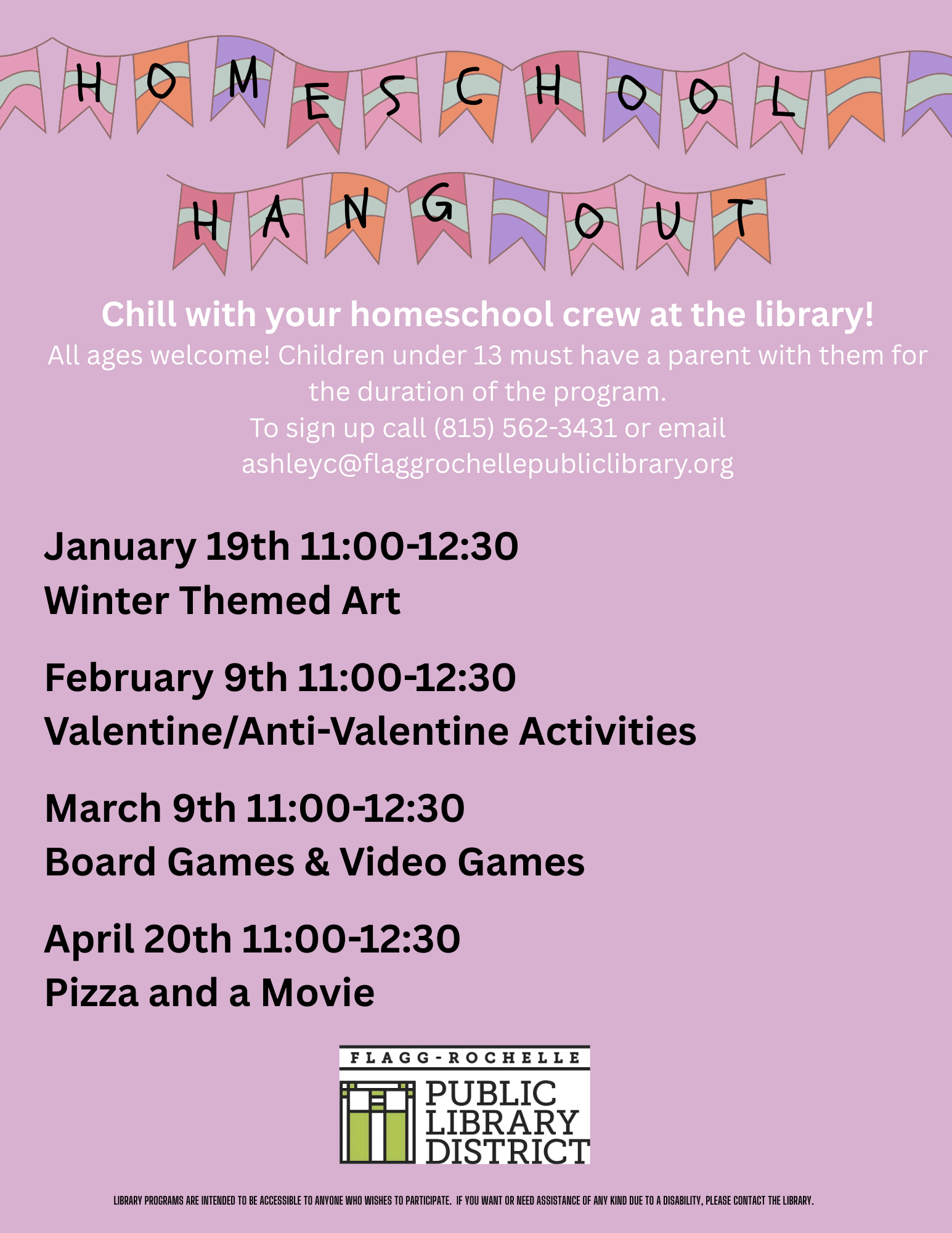 PLEASE NOTE: Events are subject to change, so please contact the library with questions or concerns about specific events or programs.